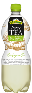 Pure Tea Ingwer Tee wird aus bestem Ingwer direkt aufgebrüht. Das Teegetränk zeichnet sich durch eine angenehme, charakteristische Ingwerschärfe in Geruch und Geschmack aus. Ein Schuss spritziger Zitronensaft rundet die würzige Ingwer-Note harmonisch ab. Die Wurzel gilt als altbewährtes Hausmittel; heute zählt der Ingwer zu den aromatischen Helden der modernen Küche. Durch das besondere Brühverfahren und die schonende Zubereitung kommt der charakteristische, vollmundige Geschmack des Tees besonders gut zur Geltung – ohne jegliche Süßung! Ohne Zucker und Süßstoffe ist Pfanner Pure Tea das ideale Getränk für natürliche Erfrischung. Dem Zeitgeist entsprechend wurde Pfanner Pure Tea speziell für Konsumenten entwickelt, die über den Tag verteilt viel trinken, dabei aber nicht auf Genuss und Geschmack verzichten möchten.